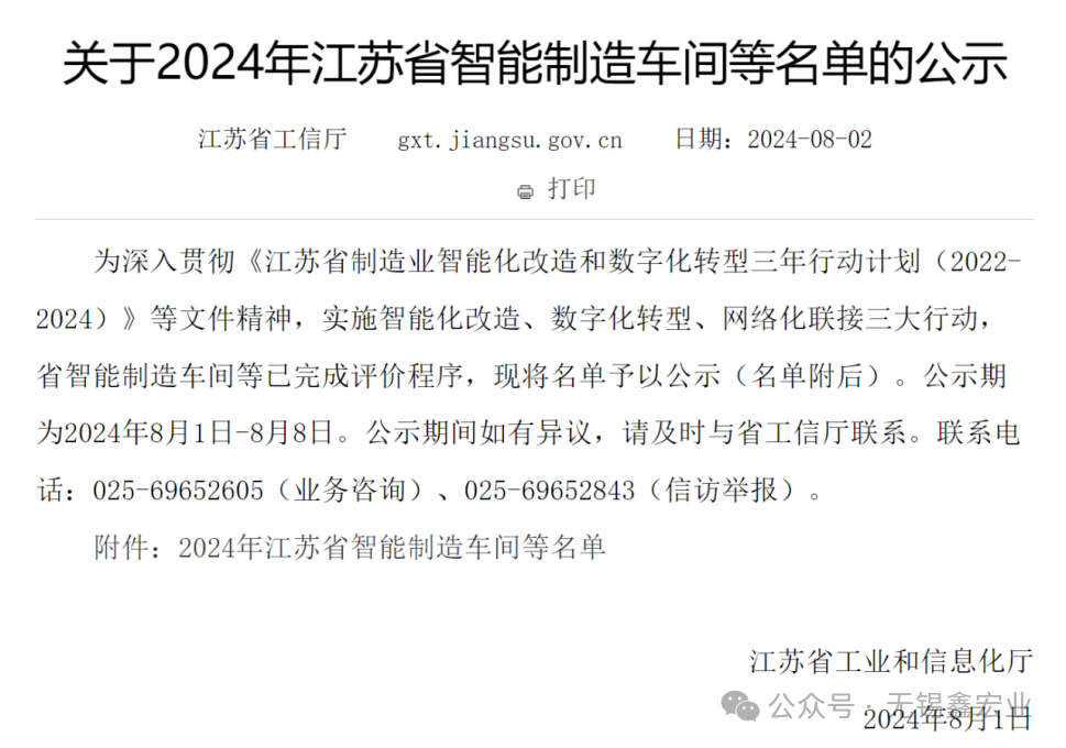 省工信廳于8月2日發布了《關于2024年江蘇省智能制造車間等名單的公示》,經過嚴格的申報、初審、現場核查等環節,無錫鑫宏業線纜科技股份有限公司申報的新能源特種線纜智能生產車間成功入圍!同時,這也是無錫鑫宏業繼2023年后的第二個省智能制造車間,在此表示熱烈的祝賀!