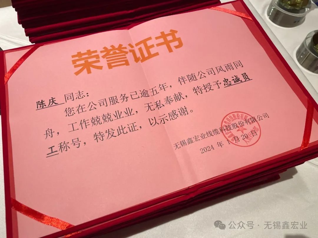 無錫鑫宏業線纜科技股份有限公司年會盛典于2024年1月20日10點58分在泓歷皇朝(東亭店)隆重舉行。
