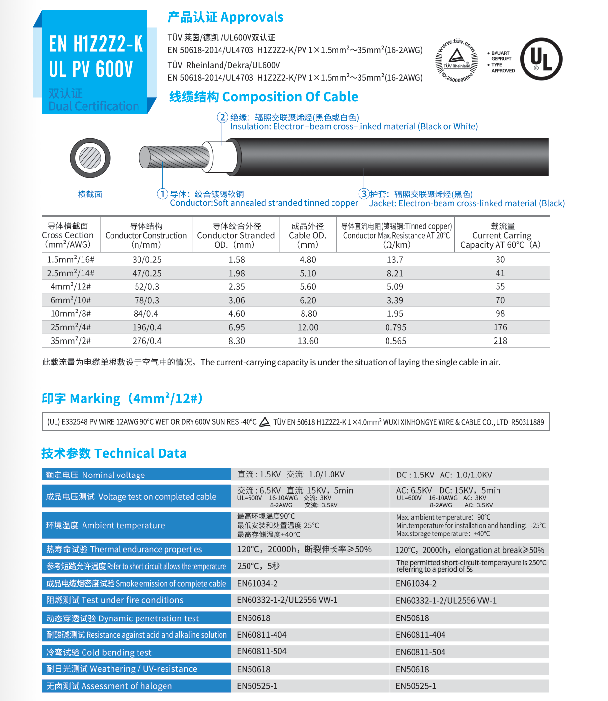 EN H1Z2Z2-K UL PV 600V 雙認證